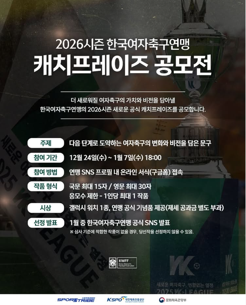 2026시즌 한국여자축구연맹 캐치프레이즈 공모전2026시즌 한국여자축구연맹 캐치프레이즈 공모전