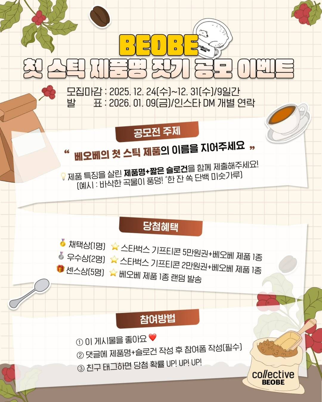 - 채택상(1명): 스타벅스 5만원권+베오베 제품 1종