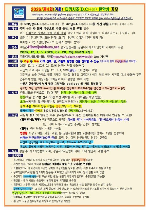 2026년 제4회(겨울) 디카시조(D.C 時調) 문학상2026년 제4회(겨울) 디카시조(D.C 時調) 문학상