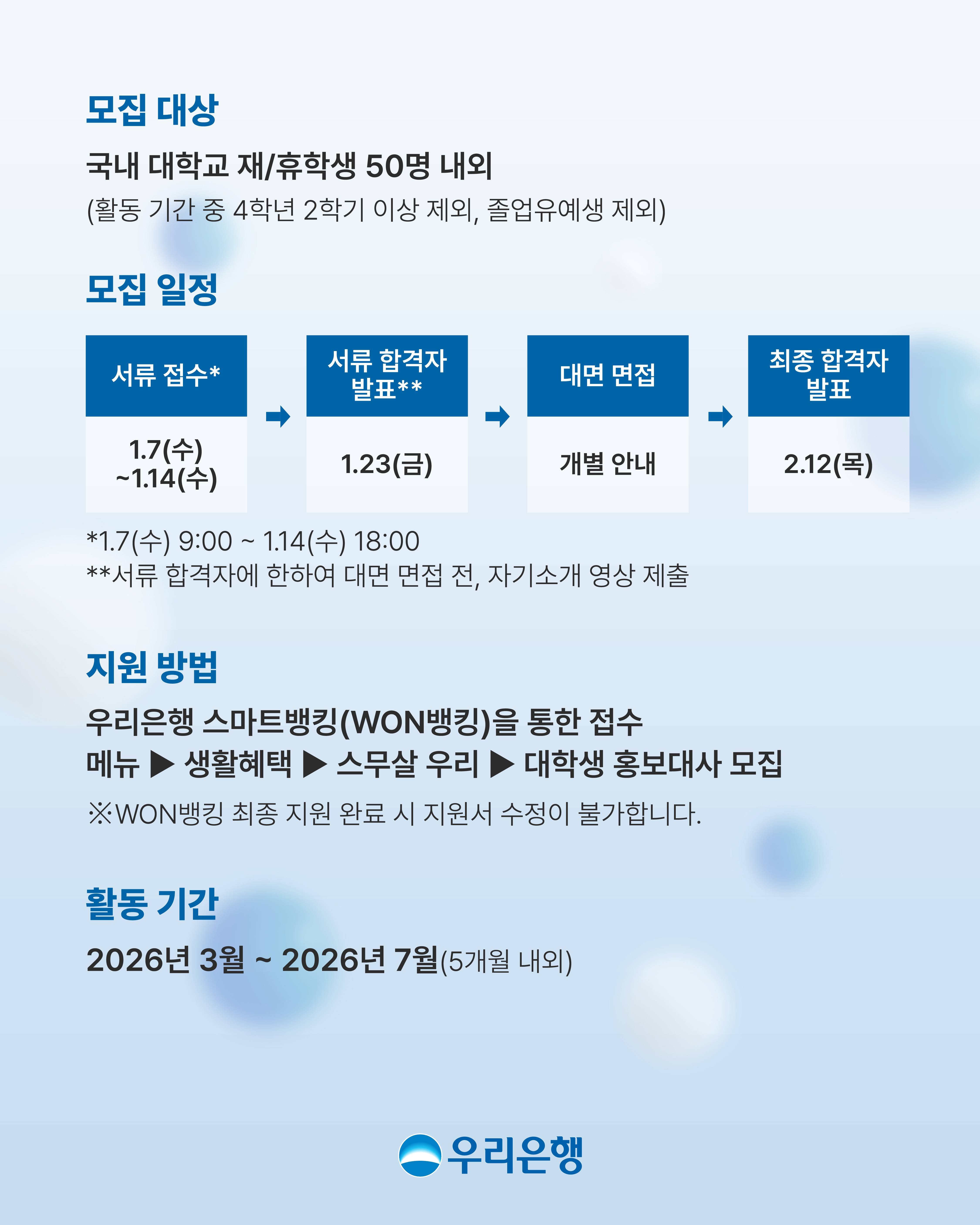 모집 일정은 내부 사정에 의해 변경될 수 있습니다.
