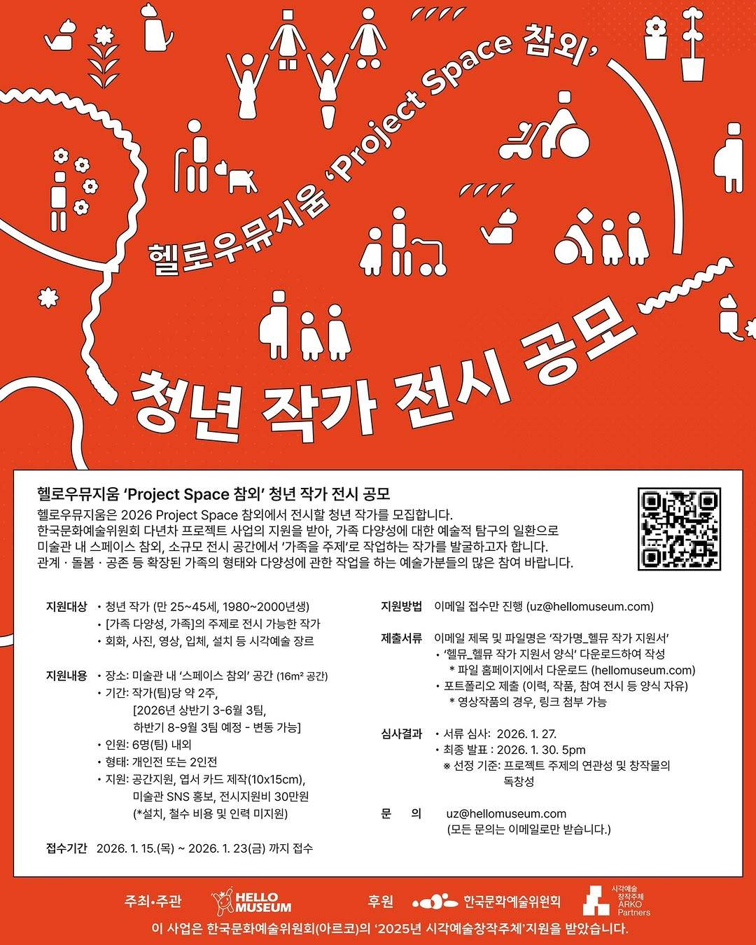 2026 헬로우뮤지움 청년 작가 모집🎨 2026 헬로우뮤지움 청년 작가 모집!