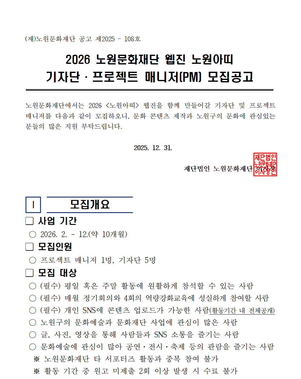 ◈ 2026 노원아띠 웹진 프로젝트 매니저 지원하기(클릭)