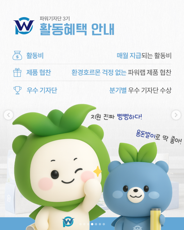 친환경 제품으로 우수한 성능의 파워랩 제품을 사용하고 활동비 지원 혜택까지 한 번에 받으실 분들 모두 참여해보세요😍