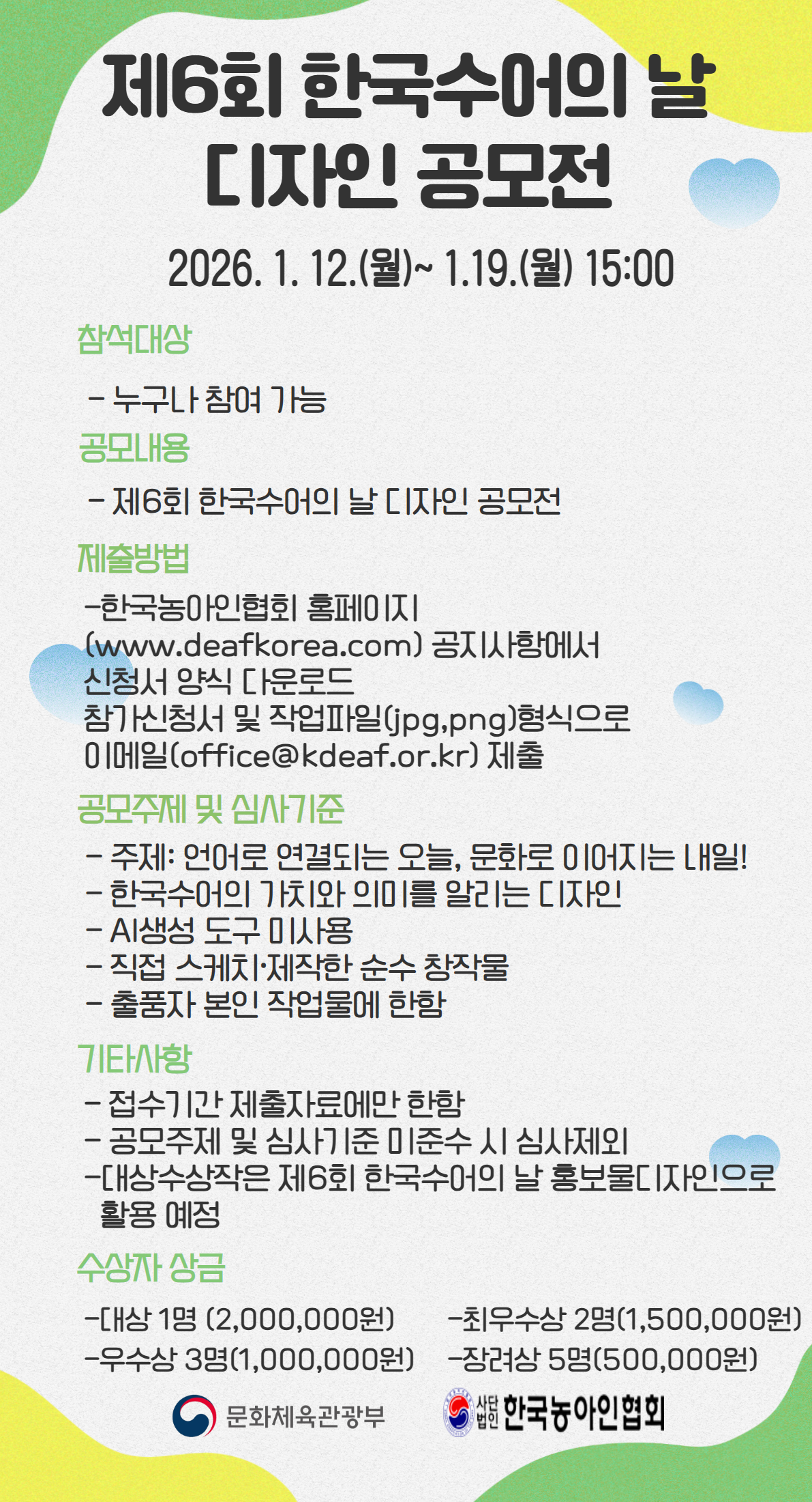 *수상자 발표: 2026. 1. 23.(금) 한국농아인협회 홈페이지 공지