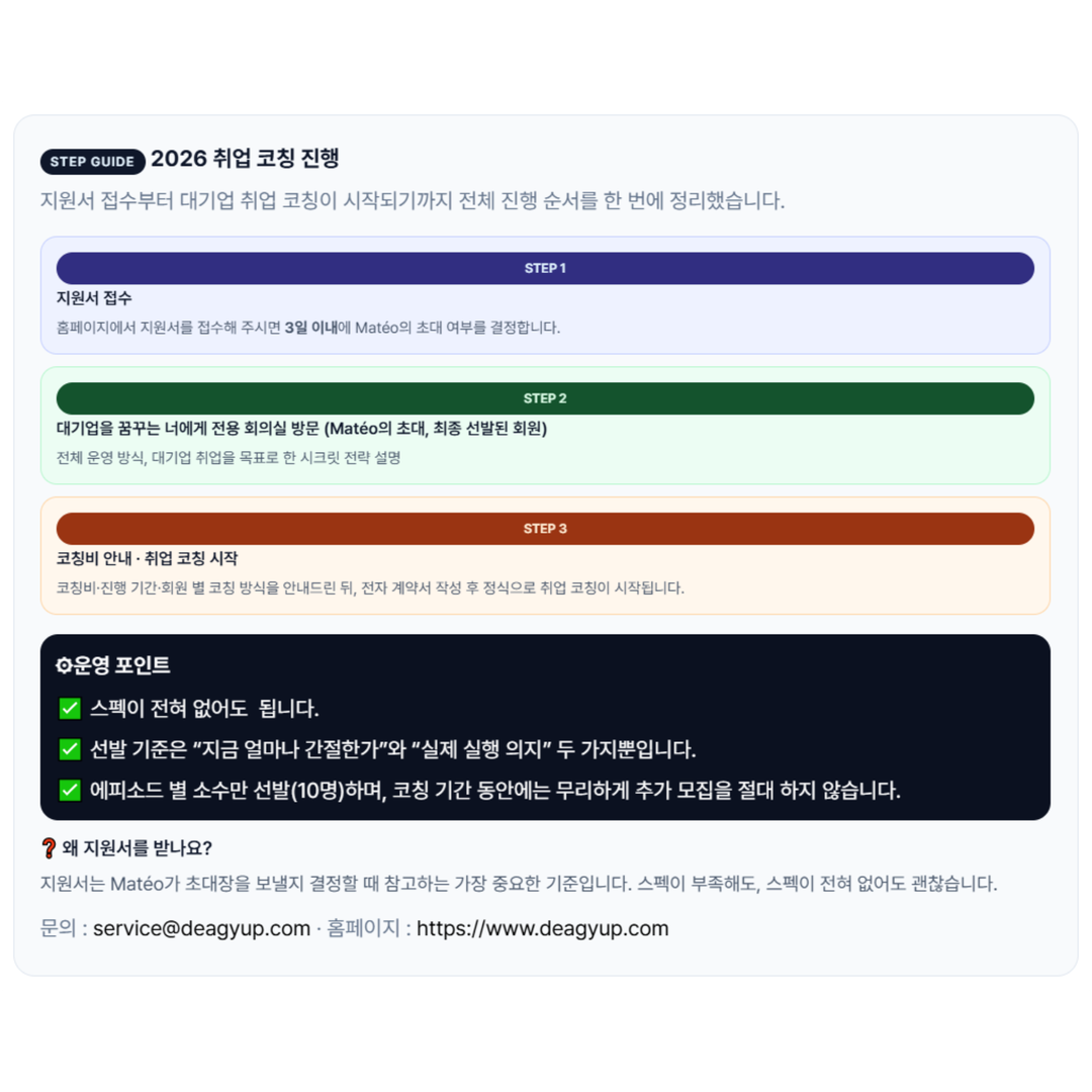 🌐 To Big Dreamers (대기업을 꿈꾸는 너에게) 공식 홈페이지 : www.deagyup.com