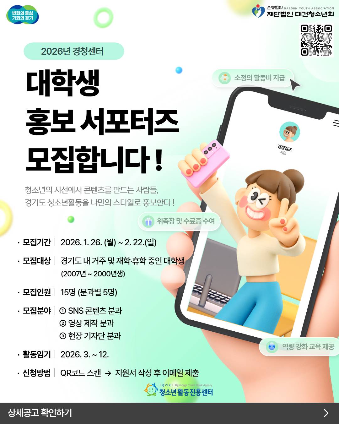 2026년 경청센터 대학생 홍보 서포터즈 모집모집 공고 및 지원서 >>>>>>>>>>> 경기도청소년활동진흥센터