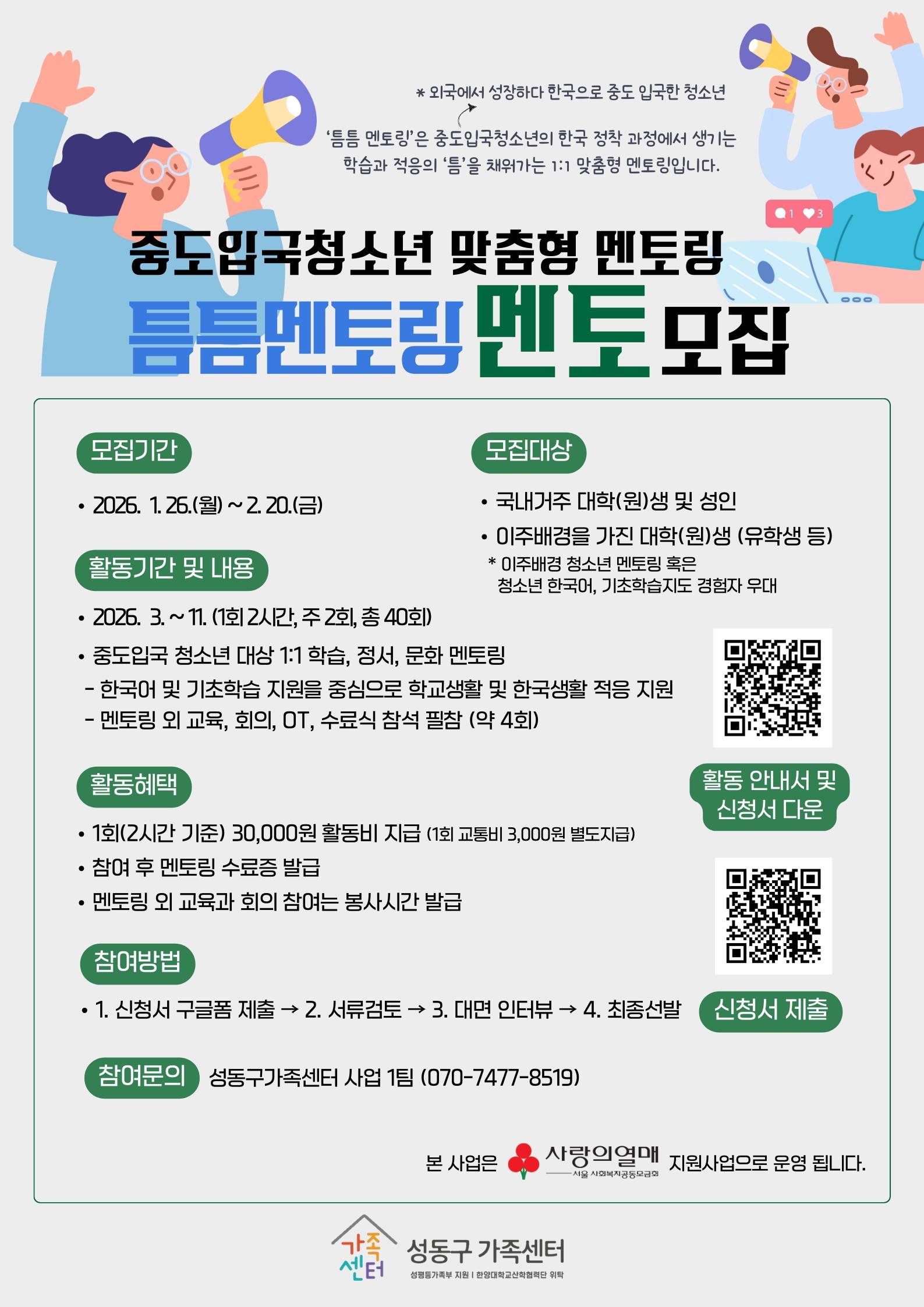 <성동구가족센터>는 모든 가족을 대상으로 가족상담, 가족교육, 가족돌봄, 가족여가문화,