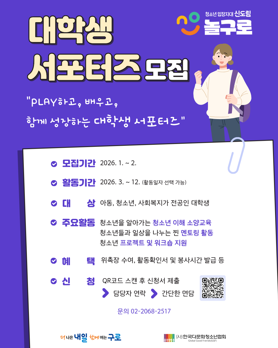 청소년입장지대 '신도림놀구로' 대학생 서포터즈 모집