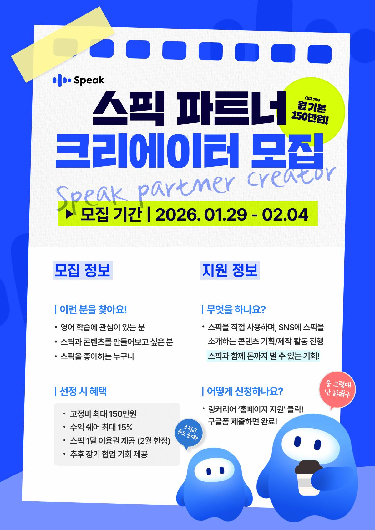 [스픽] 파트너 크리에이터를 모집합니다💙 스픽 파트너 크리에이터를 모집합니다