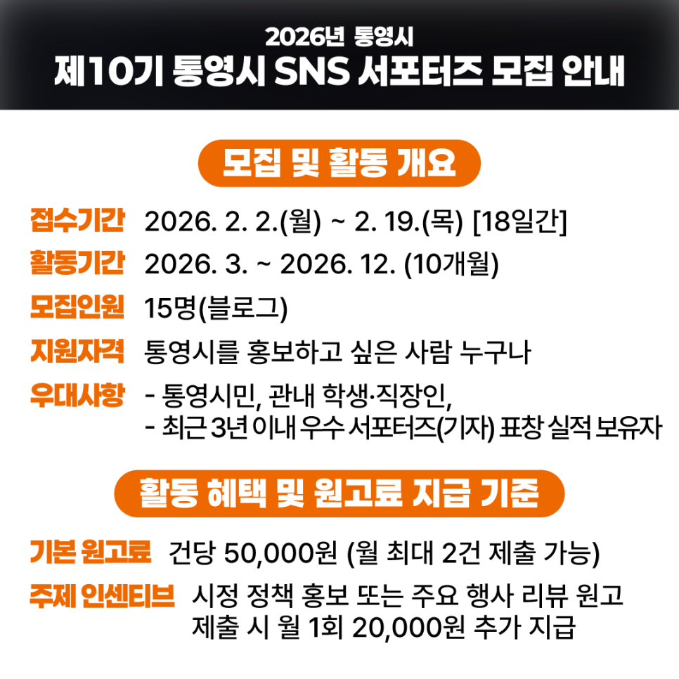 2026년 제10기 통영시 SNS 서포터즈 모집2026년 제10기 통영시 SNS 서포터즈 모집