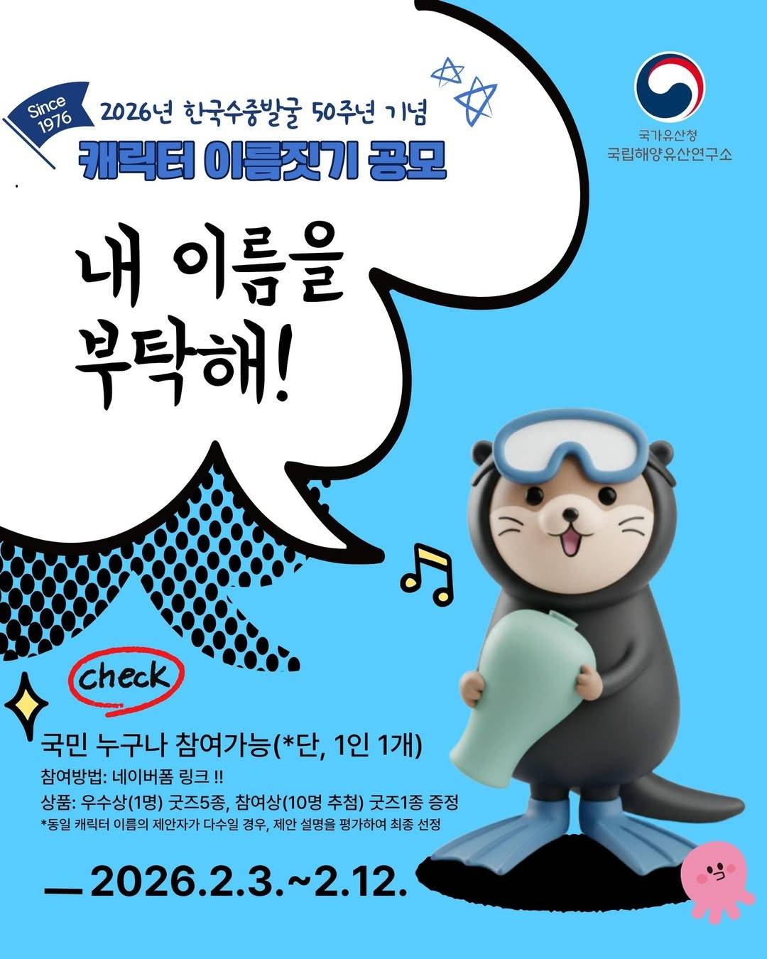 2026년 한국수중발굴 50주년 기념 캐릭터 이름짓기 공모2026년 한국수중발굴 50주년 기념 캐릭터 이름짓기 공모