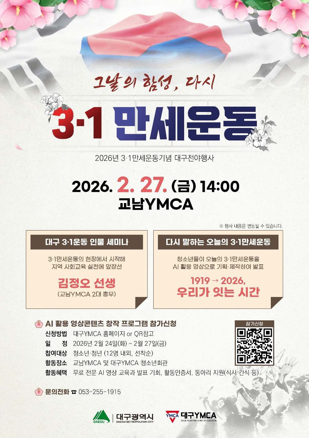2026년 3·1만세운동 기념 대구 전야행사 청(소)년 AI 활용 영상전2026년 3·1만세운동 기념 대구 전야행사 청(소)년 AI 활용 영상전