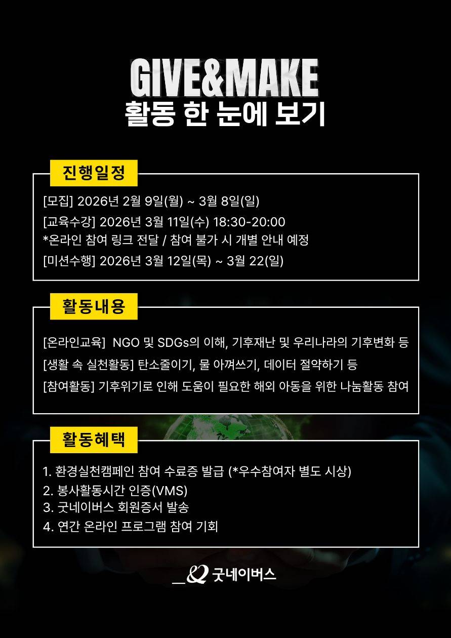 굿네이버스 환경실천 대외봉사활동 'Give&Make' 기후활동가 모집