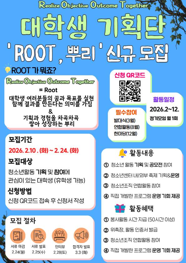 2026년 시립목동청소년센터 대학생 기획단 'ROOT' 참가 대학생 모집ROOT는