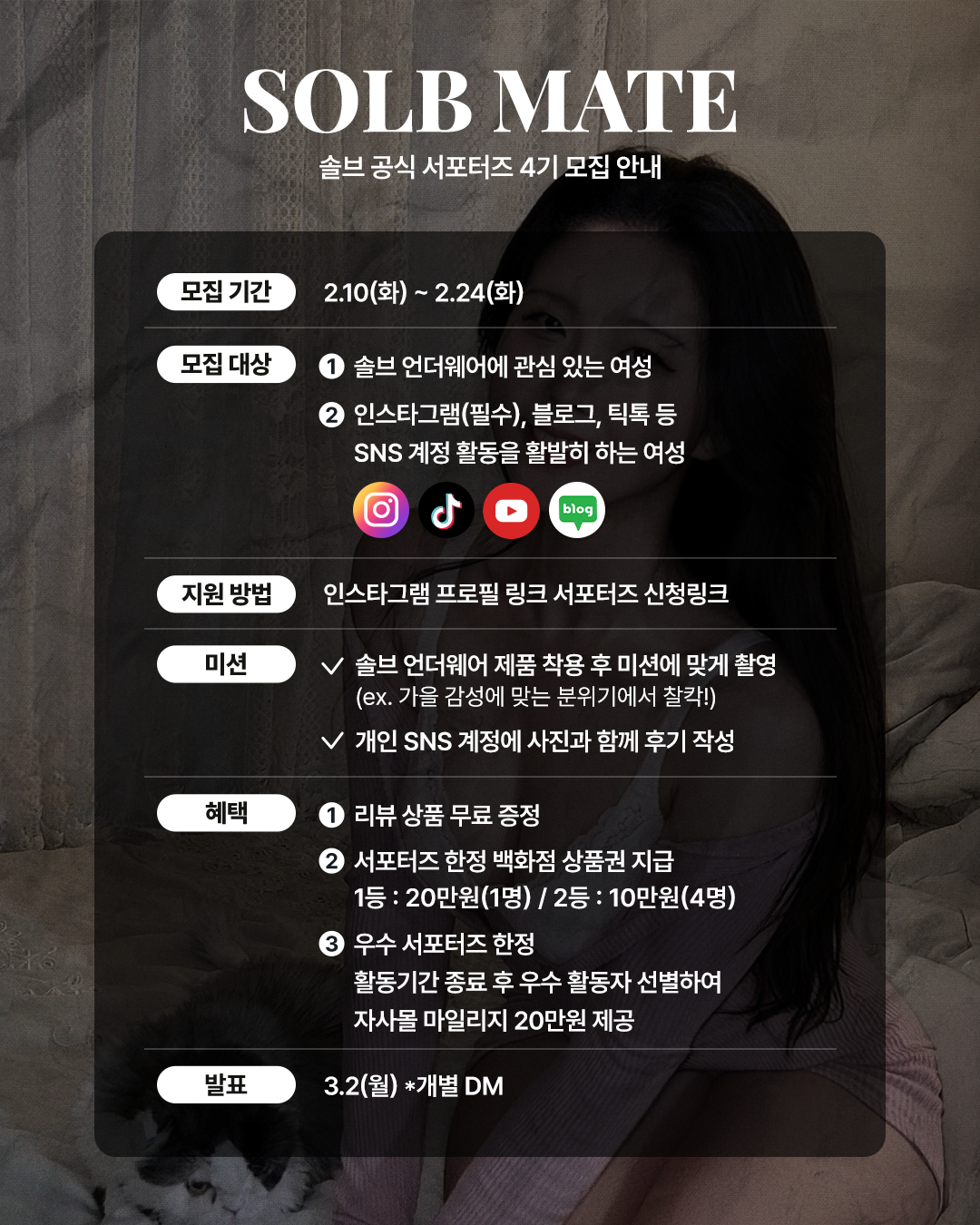 📌모집 대상: * 솔브 언더웨어에 관심 있는 여성