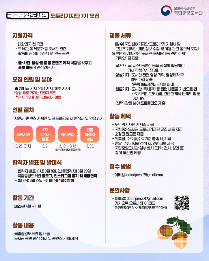 2026년 국립중앙도서관 국민참여기자단 도토리 7기 모집2026년 국립중앙도서관 국민참여기자단 도토리 7기 모집