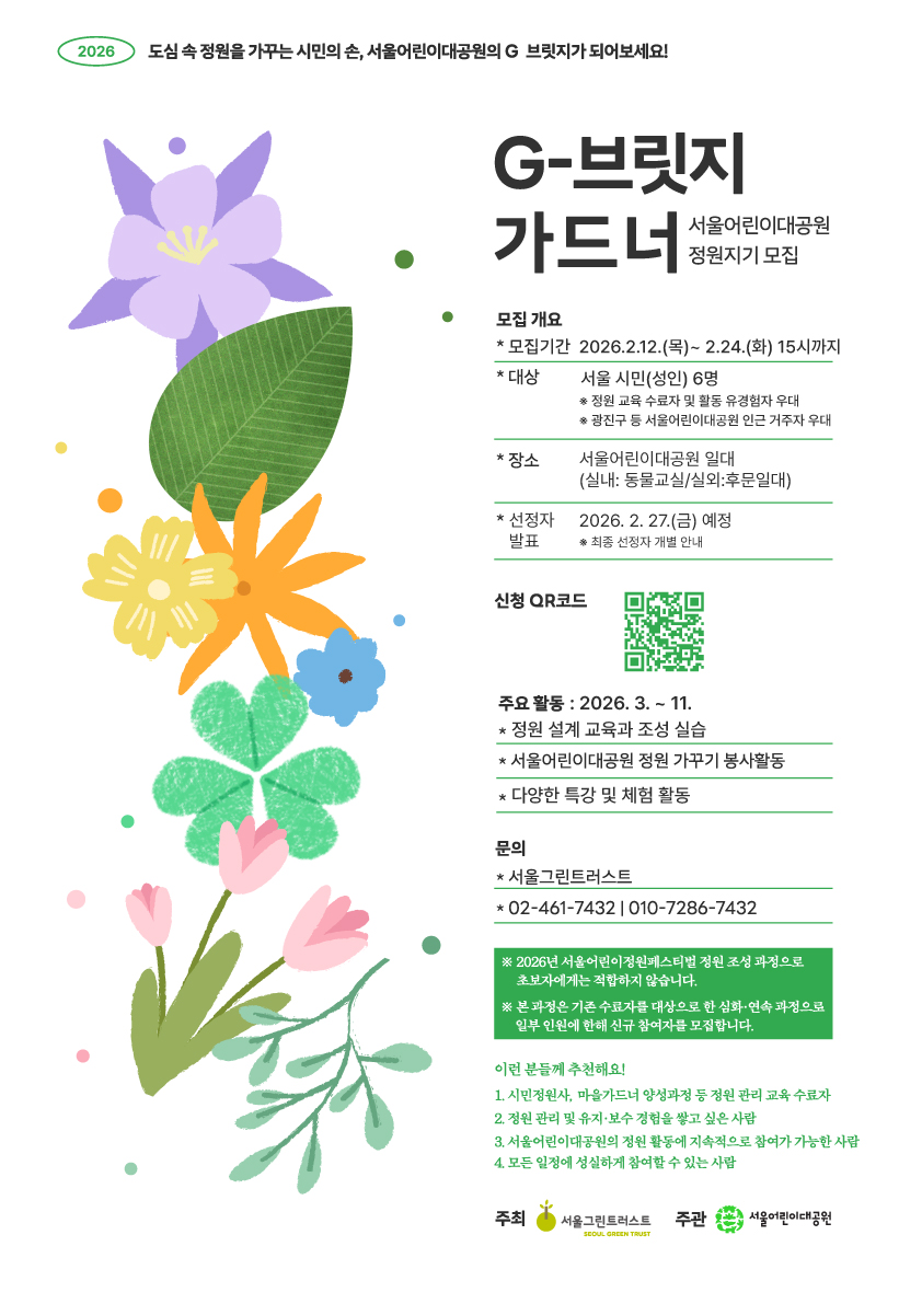 [서울그린트러스트] 2026년 정원의 시작부터 완성까지 함께할 G- 브릿지 가드너를 모집합니다!