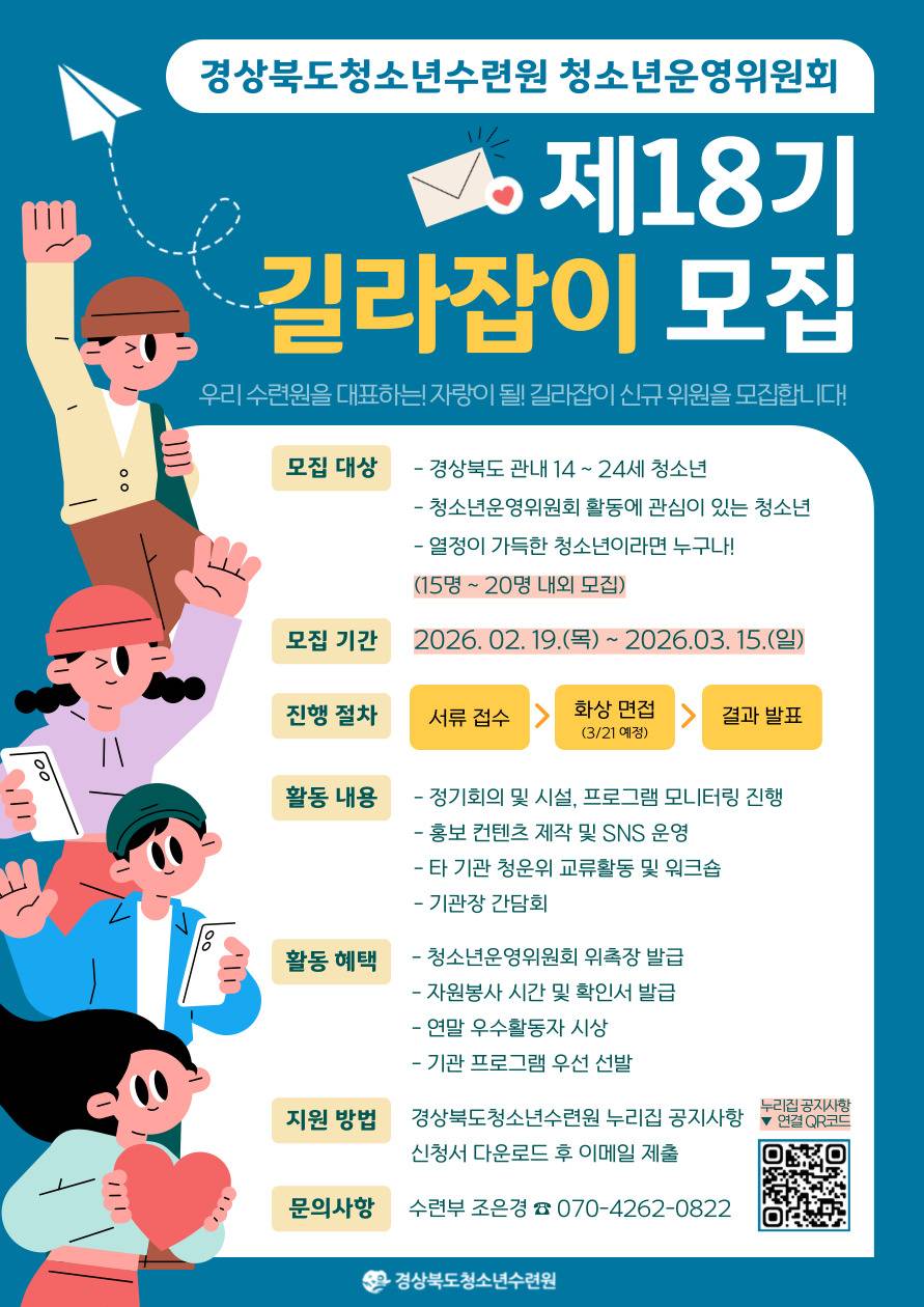 2026년 경상북도청소년수련원 청소년운영위원회 길라잡이 제 18기 모집2026년 경상북도청소년수련원 청소년운영위원회 길라잡이 제 18기 모집