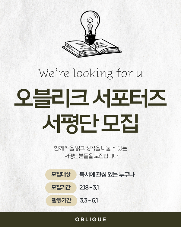 출판사 오블리크 서포터즈 모집출판사 오블리크 서포터즈 모집