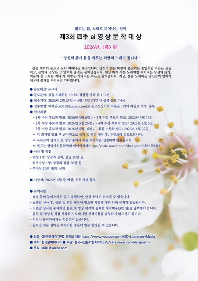 제3회 四季 ai 영상문학대상 - 2026년, <봄> 편■ 응모대상