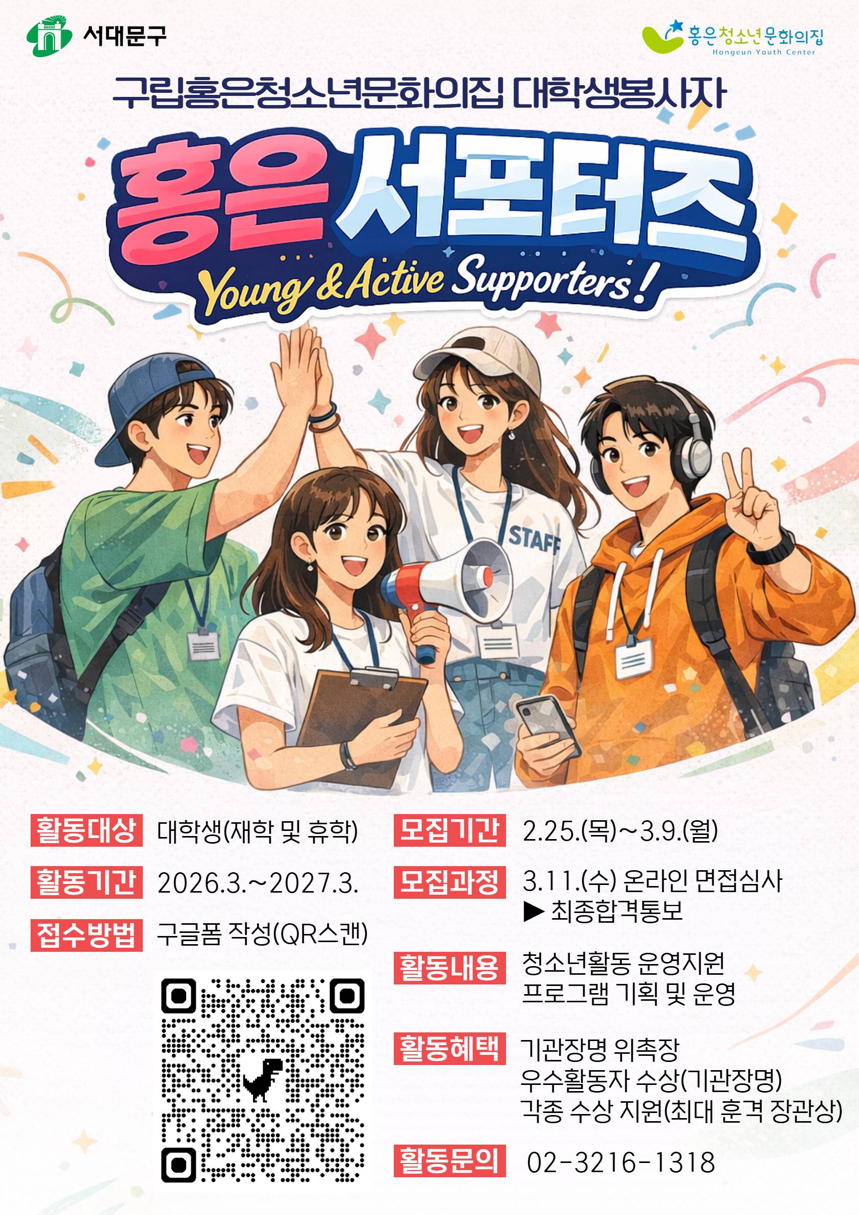 홍은서포터즈는 대학생 및 성인이 청소년 활동을 지원하고 운영할 수 있는 활동입니다!