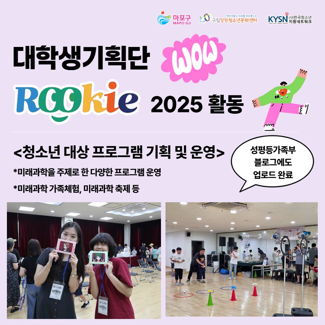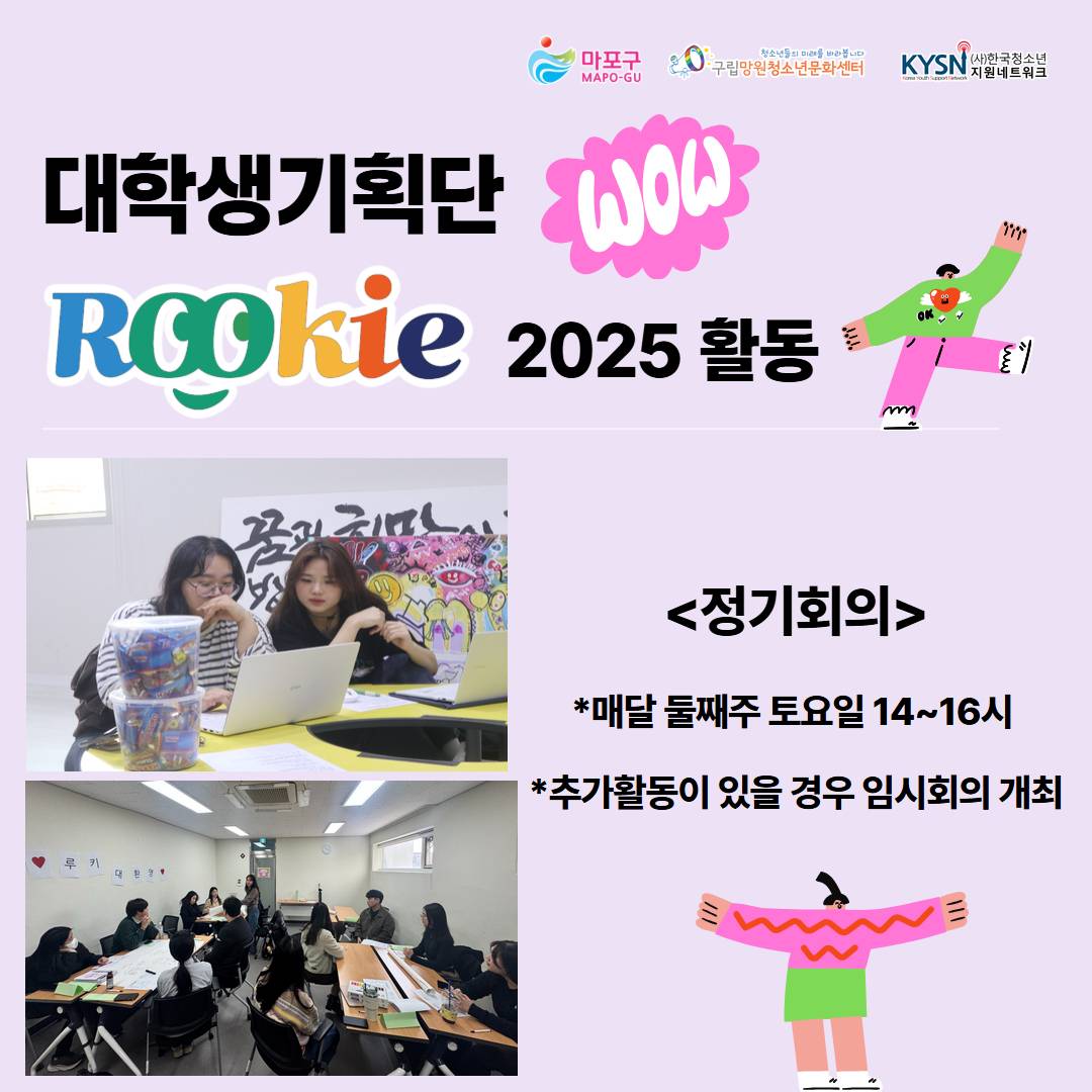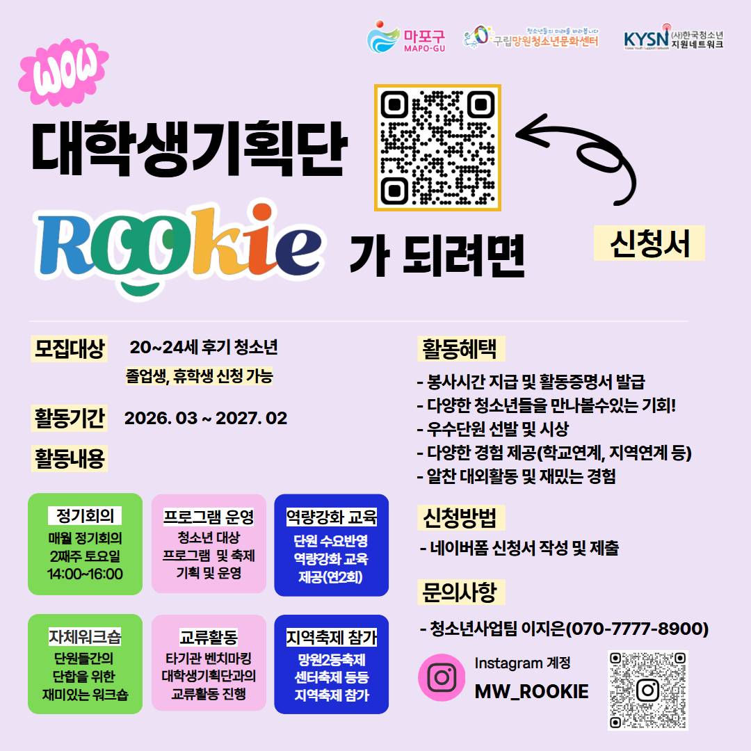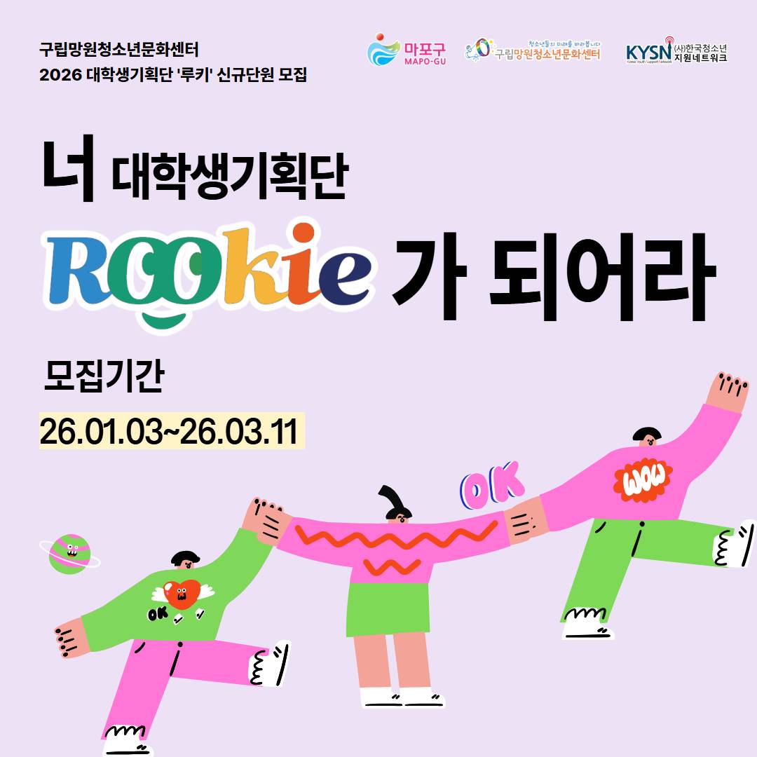 (구립망원청소년문화센터) 대학생기획단 '루키' 신규단원 추가모집🎉 2026 대학생기획단 ‘루키(ROOkie)’ 신규단원 모집!