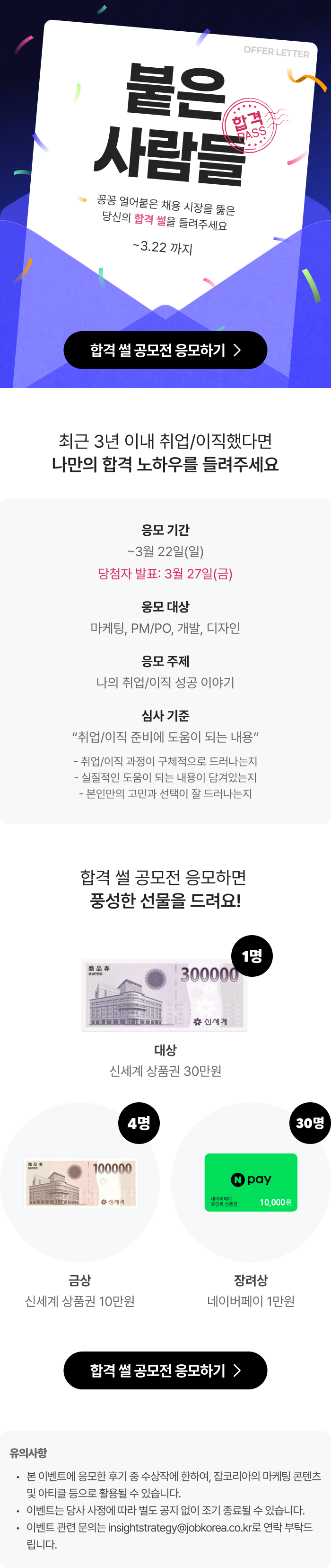 [잡코리아] 합격 썰 공모전 : 붙은 사람들 (~3/22)붙은 사람들을 찾습니다!