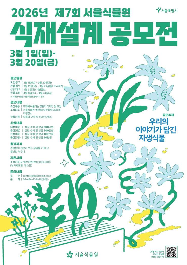 2) 문의 : 서울식물원 식재설계 공모전 운영본부 02-484-2554(내선4번)