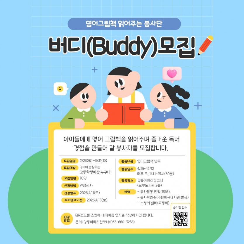 강릉아메리칸코너 봉사단 [버디] 모집강릉아메리칸코너 봉사단 [버디] 모집