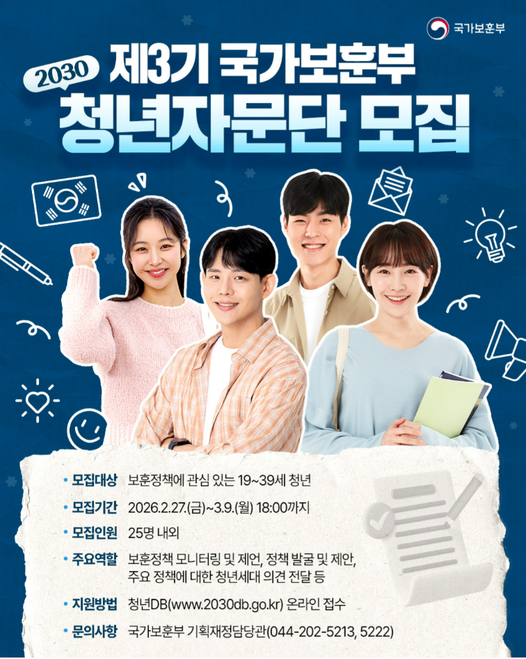 제3기 국가보훈부 2030청년자문단 모집제3기 국가보훈부 2030청년자문단 모집