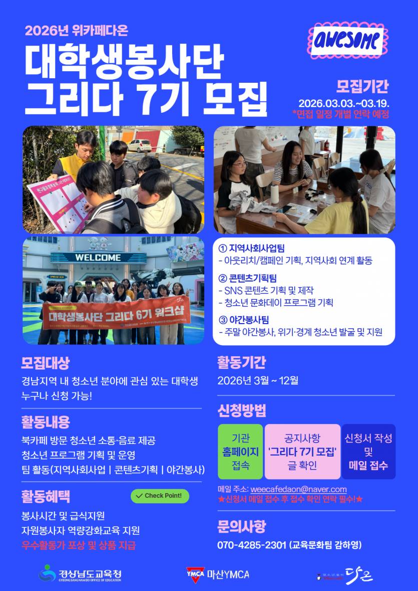 위카페다온 대학생봉사단 그리다 7기 상반기 2차 모집