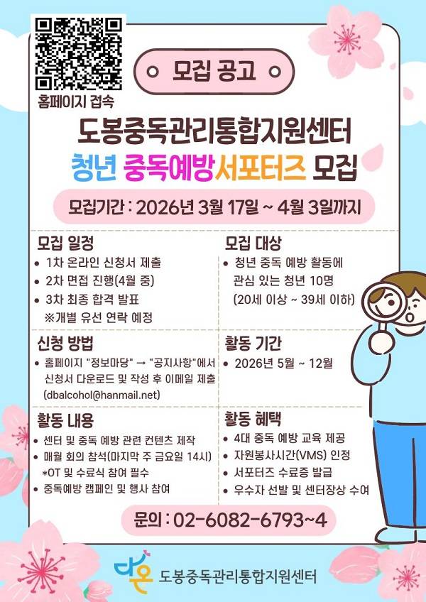 도봉청년중독예방 서포터즈 모집도봉청년중독예방 서포터즈 모집