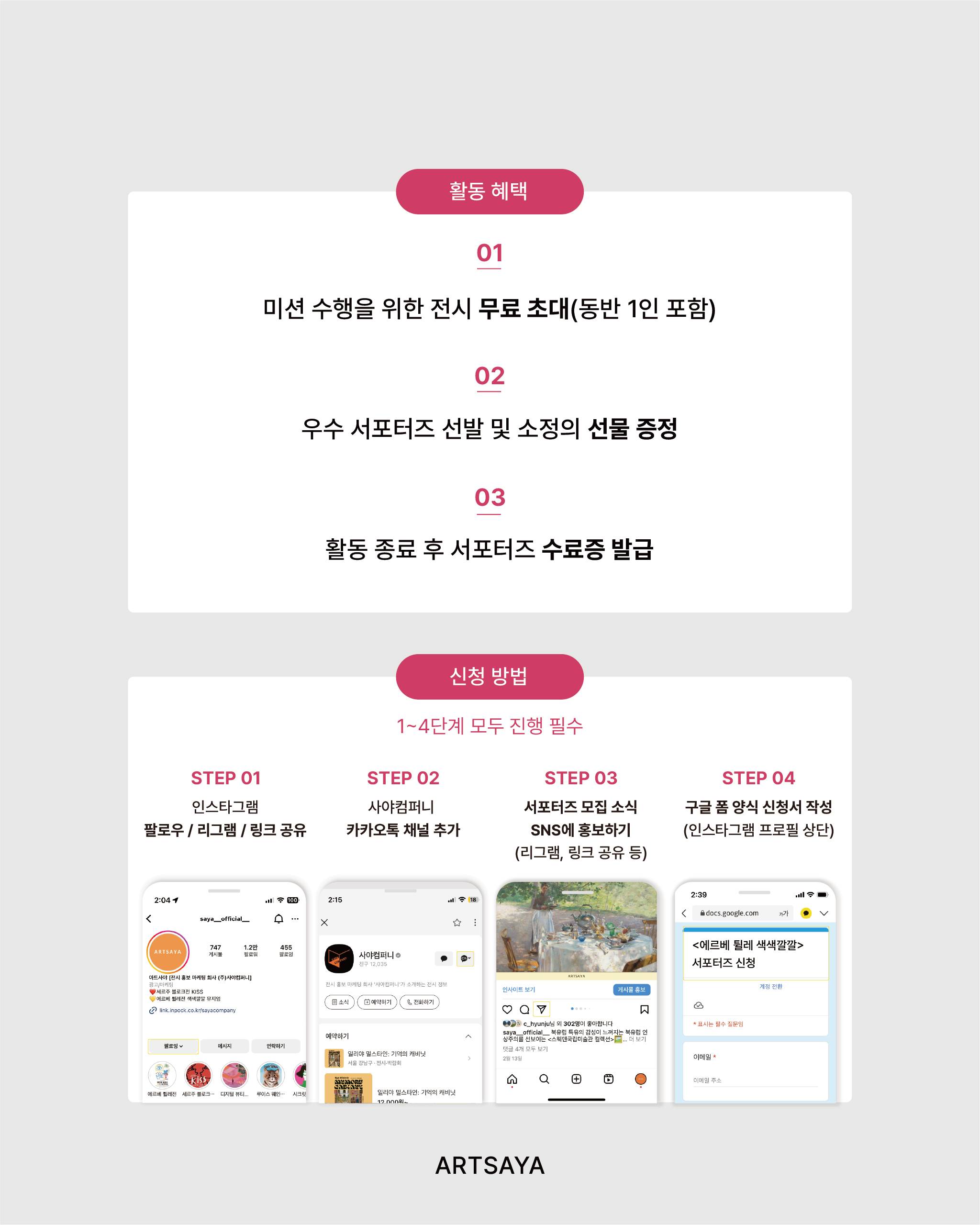- 전시 관람 후 SNS 콘텐츠 제작 및 업로드