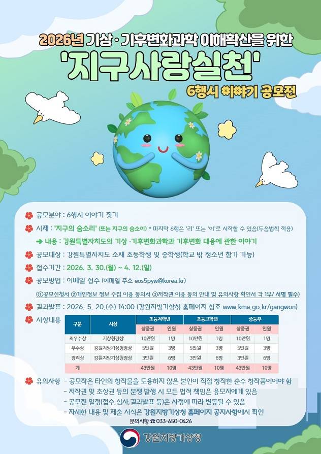 2026년 기상·기후변화과학 이해확산을 위한 '지구사랑실천' 6행시 이야기 공모전