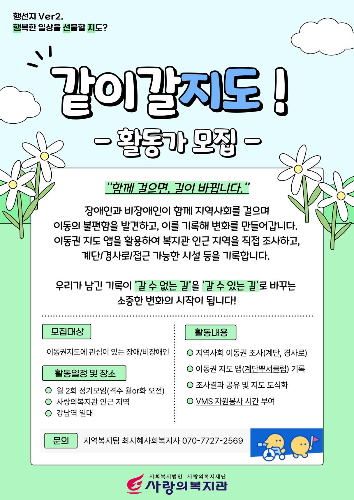 사랑의복지관 지역복지팀에서 "The사랑 모임 행선지"의 활동가를 모집합니다.