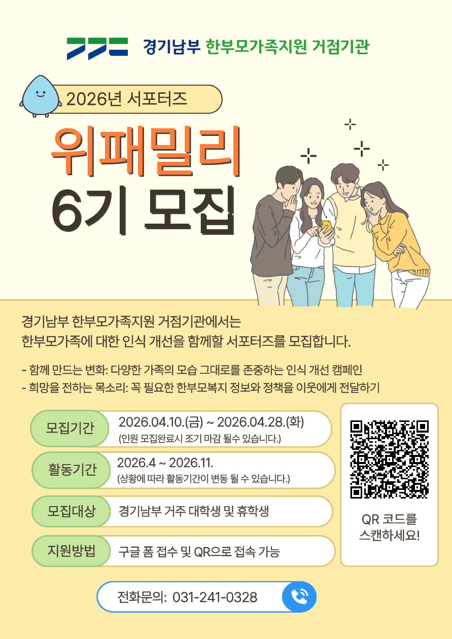 [경기남부 한부모가족지원 거점기관] '위패밀리 6기' 서포터즈 모집