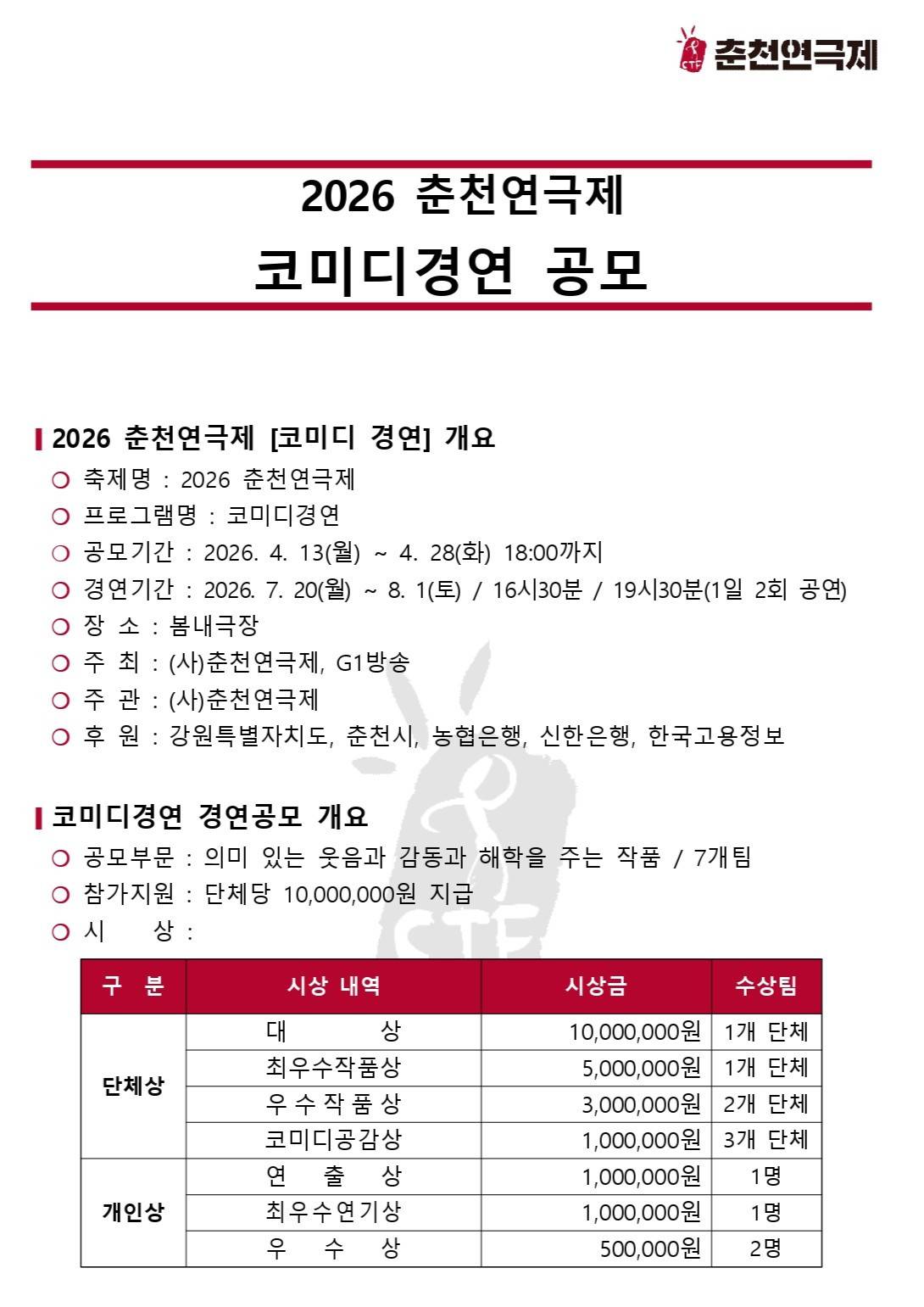 [춘천연극제] 코미디경연 공모<코미디경연> 참가팀 모집