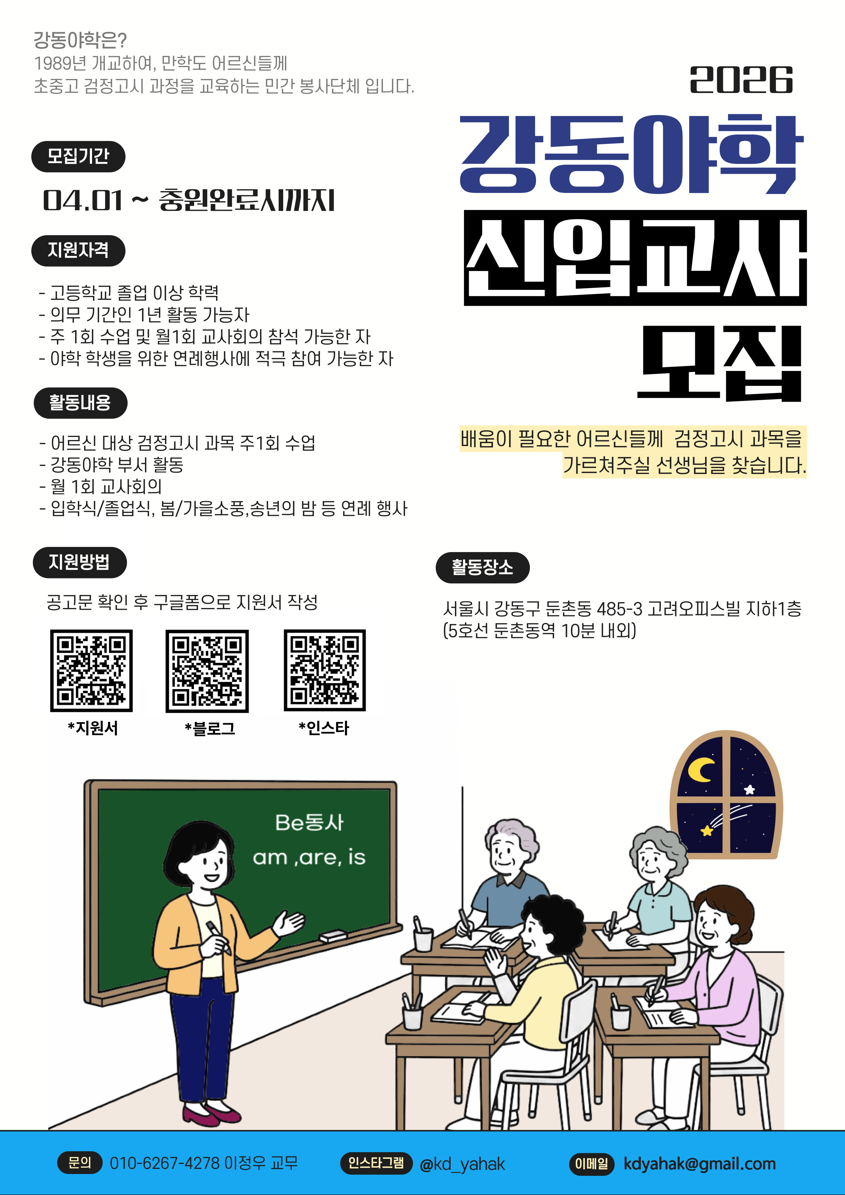 2026 강동야학 신입교사 모집2026 강동야학 신입교사 모집