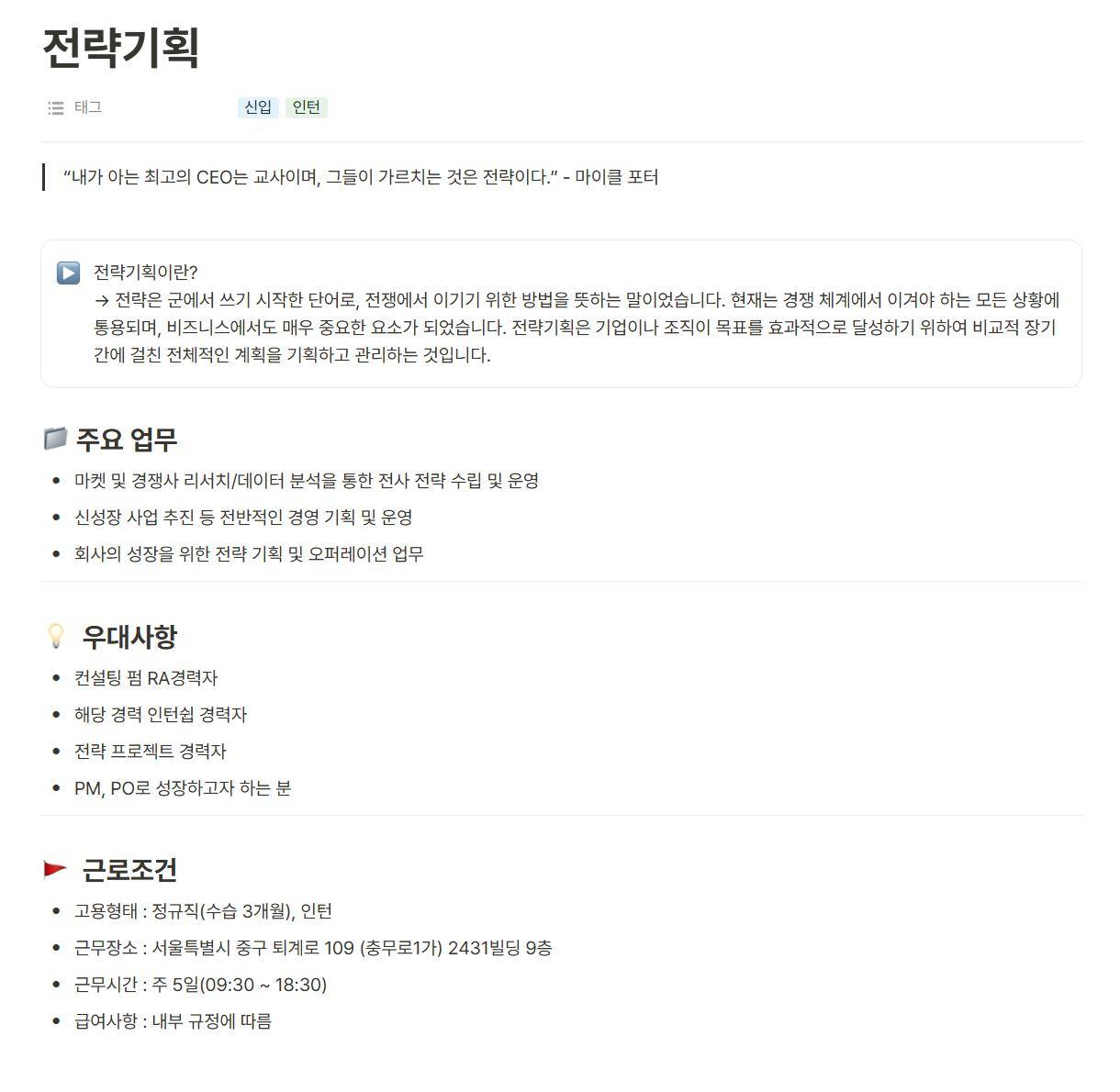•회사의 성장을 위한 전략 기획 및 오퍼레이션 업무