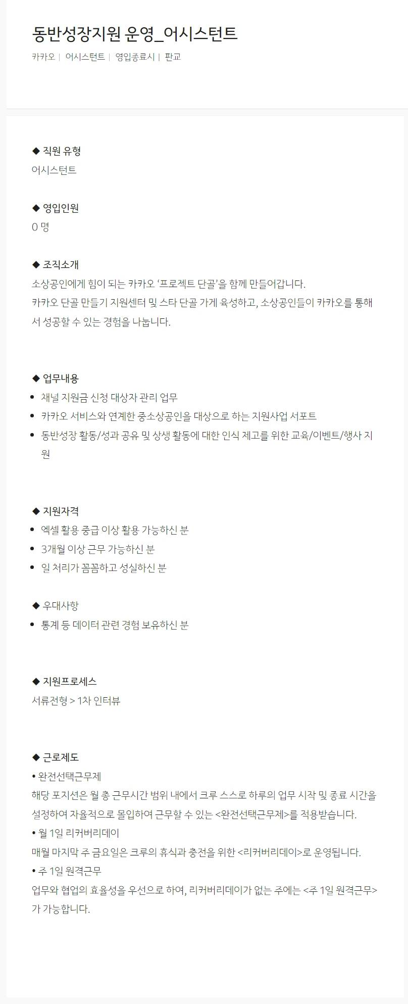 카카오 서비스와 연계한 중소상공인을 대상으로 하는 지원사업 서포트