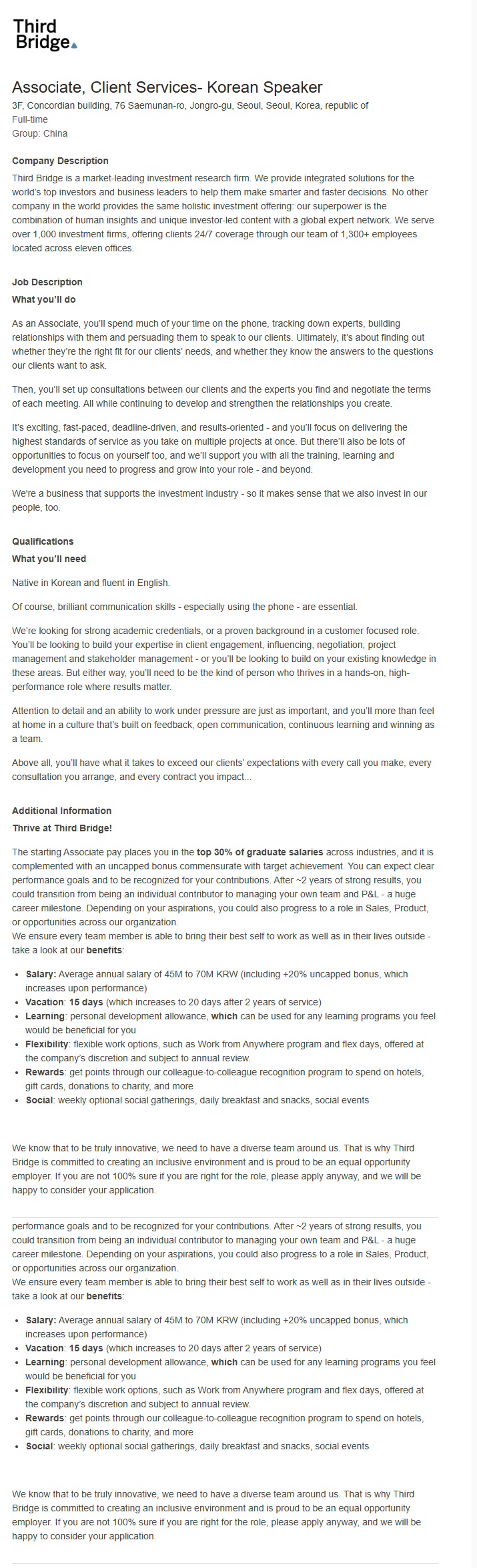 Third Bridge(써드 브릿지 그룹) Client Service Associate 채용