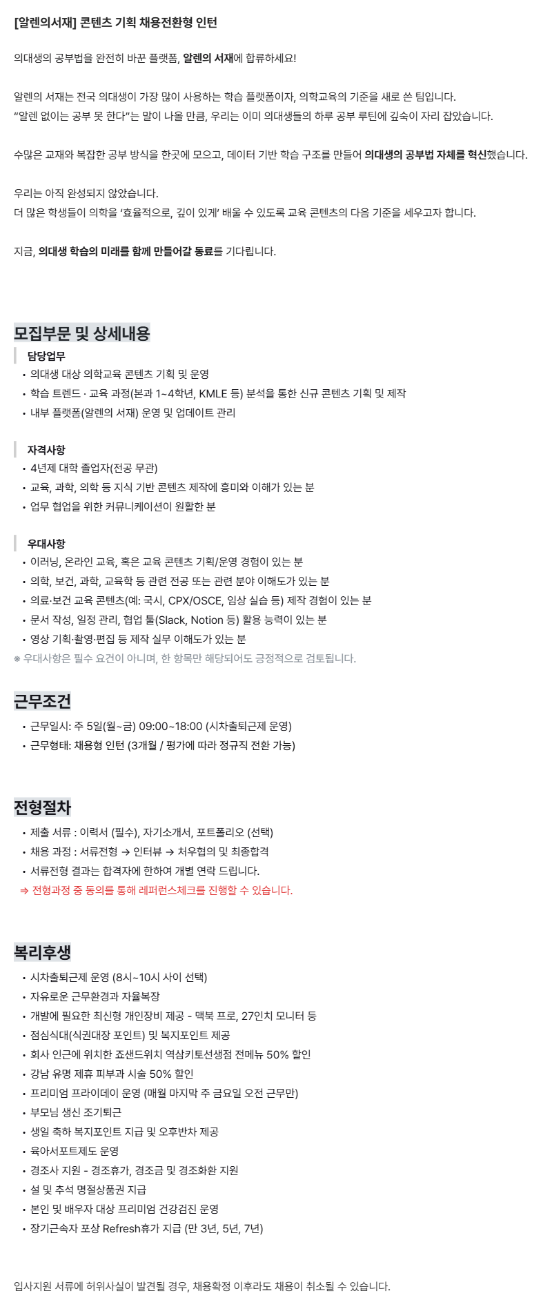 [알렌의서재] 콘텐츠 기획 채용전환형 인턴