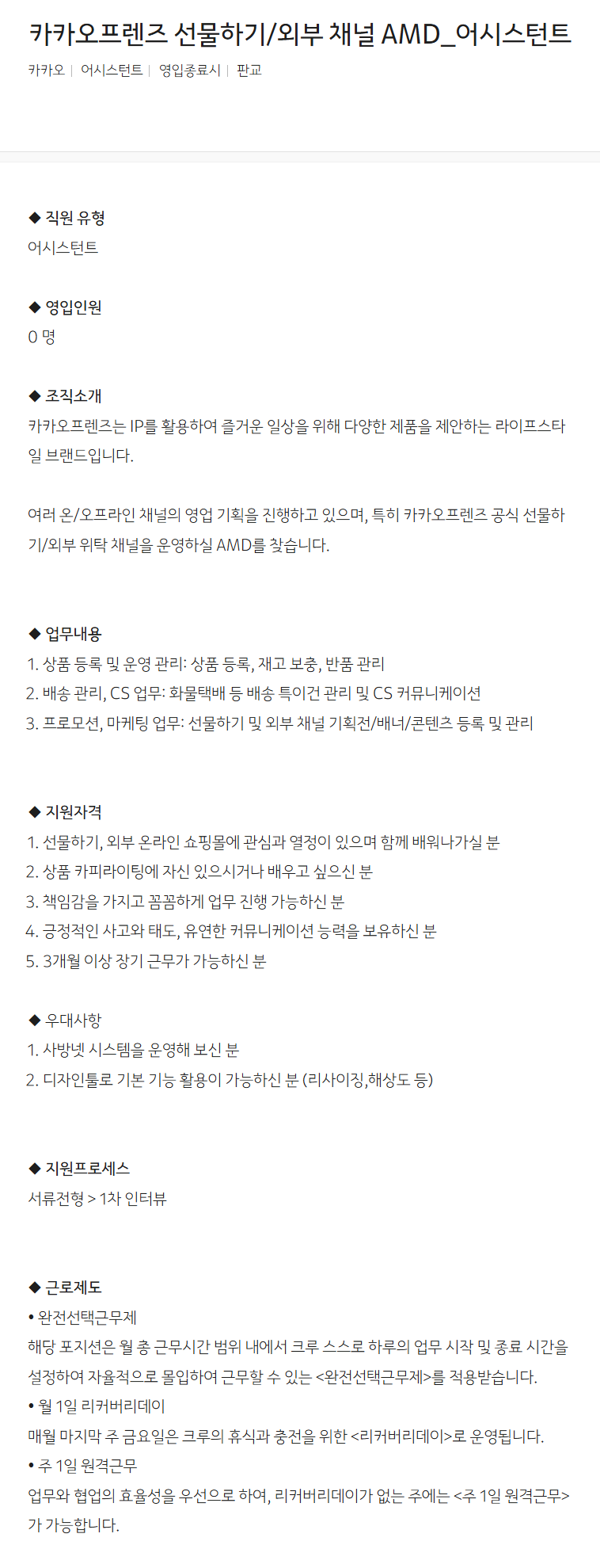 - 프로모션, 마케팅 업무: 선물하기 및 외부 채널 기획전/배너/콘텐츠 등록 및 관리