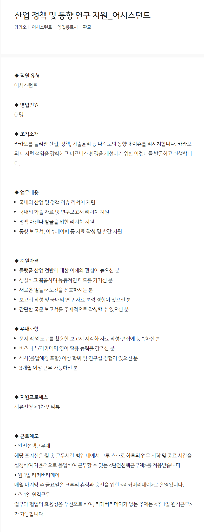 [카카오] 산업 정책 및 동향 연구 지원_어시스턴트