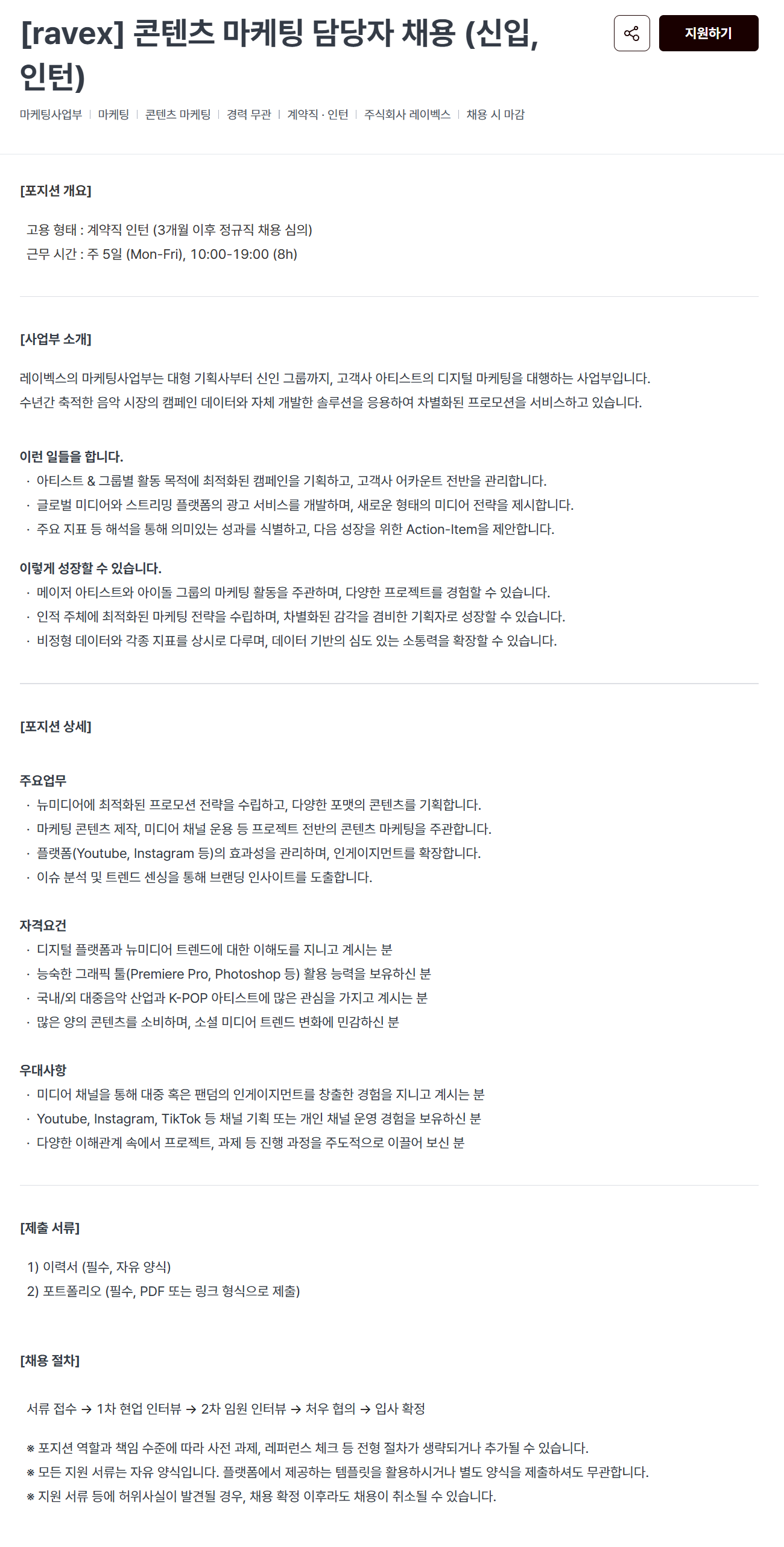 [레이벡스] 콘텐츠 마케팅 담당자 채용 (신입, 인턴)