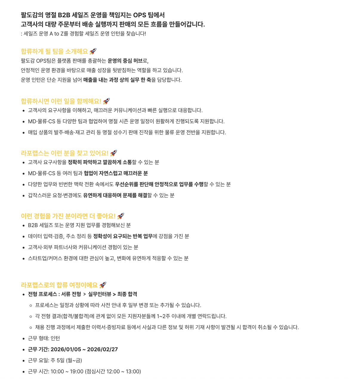 [라포랩스/팔도감] 세일즈 운영 인턴