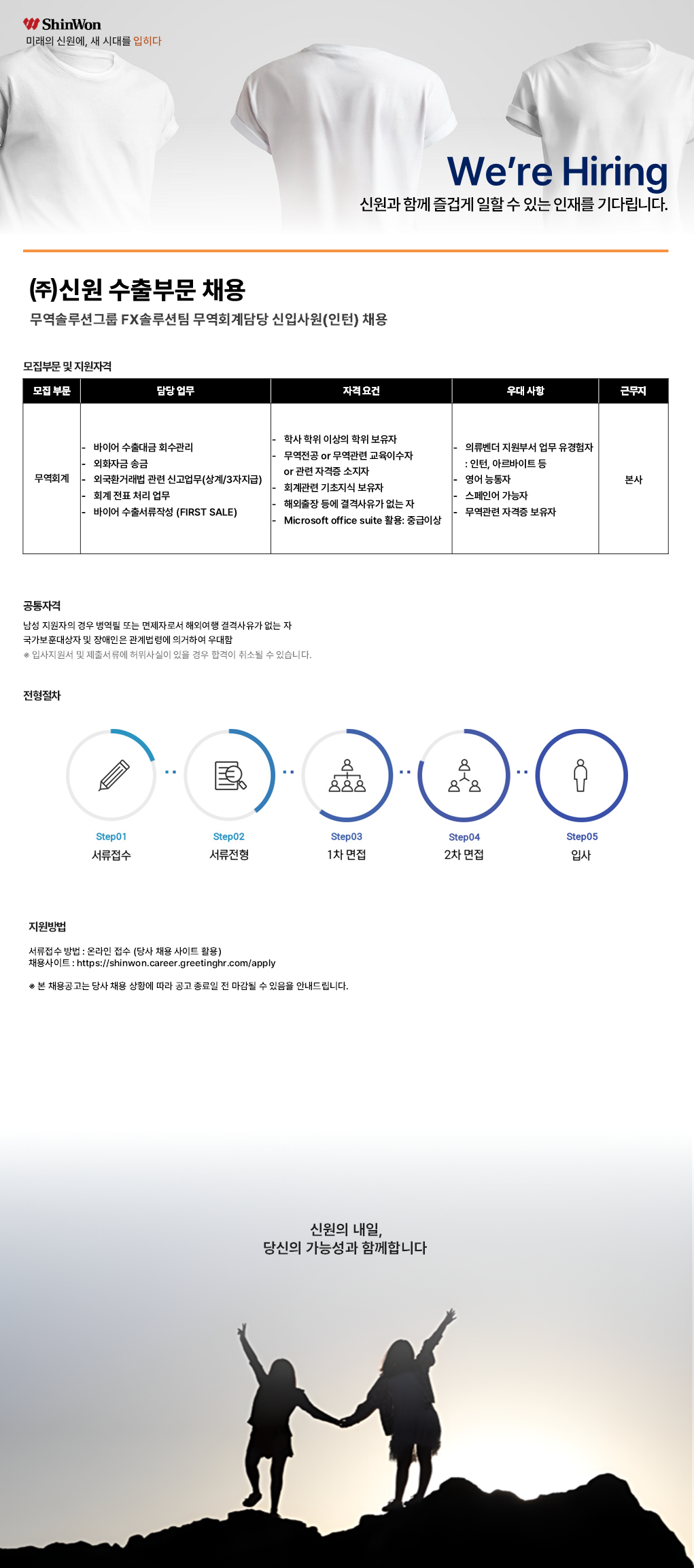 [신원] 수출부문 FX솔루션팀 무역회계 담당자 신입사원(인턴) 채용