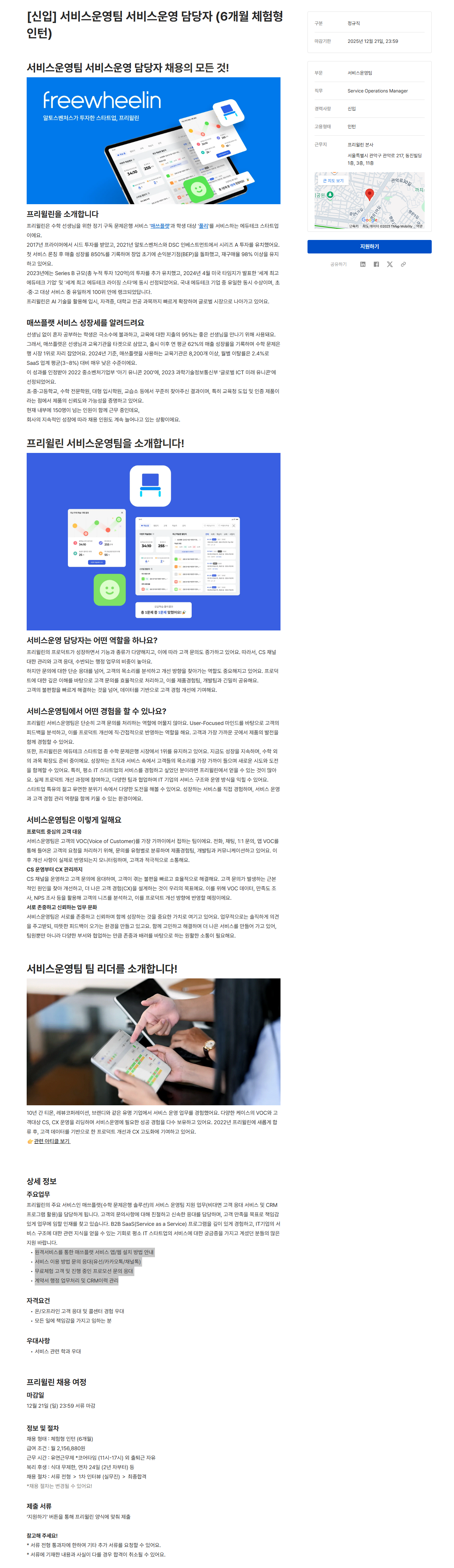 [프리윌린] [신입] 서비스운영팀 서비스운영 담당자 (6개월 체험형 인턴)