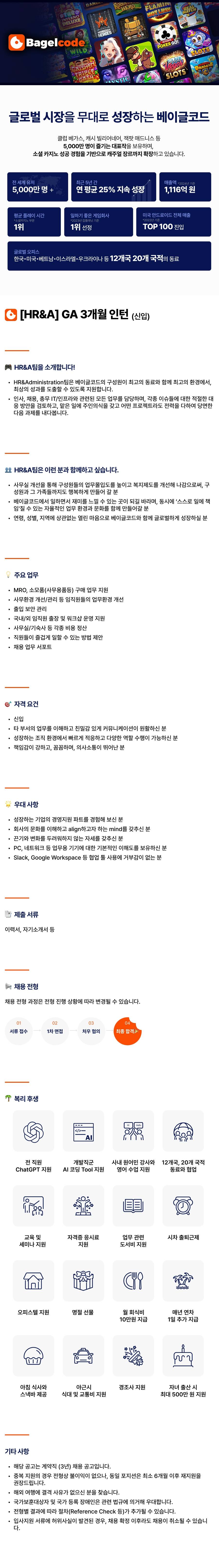 [베이글코드] [HR&A] GA Intern (3개월)