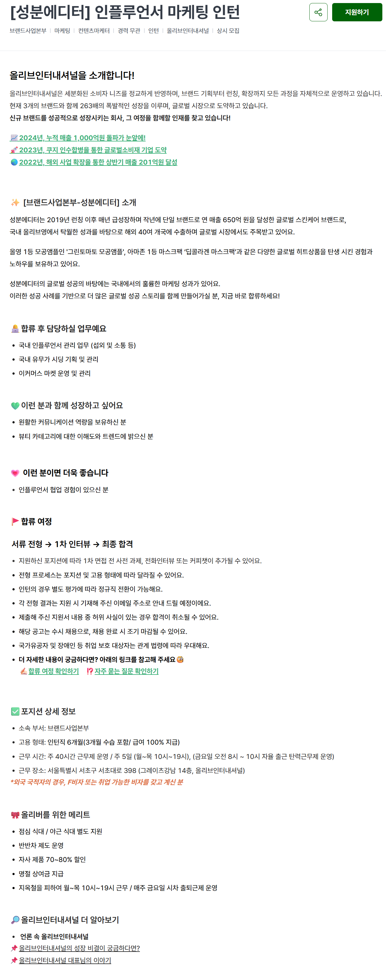 [올리브인터내셔널] [성분에디터] 인플루언서 마케팅 인턴